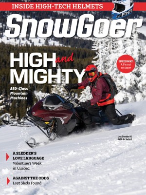 Fly high with a comparison of the 850-class mountain snowmobiles. Go far in Quebec for a five-day Valentine’s escape, and learn the inside tricks (and responsibilities) of a snowmobile guide. Snowmobilers find past loves when they track down gone-but-not-forgotten sleds. Meet the Mille Lacs Drift Skippers of Isle, Minnesota, plan some February rides and learn what the Old Guys are up to now.